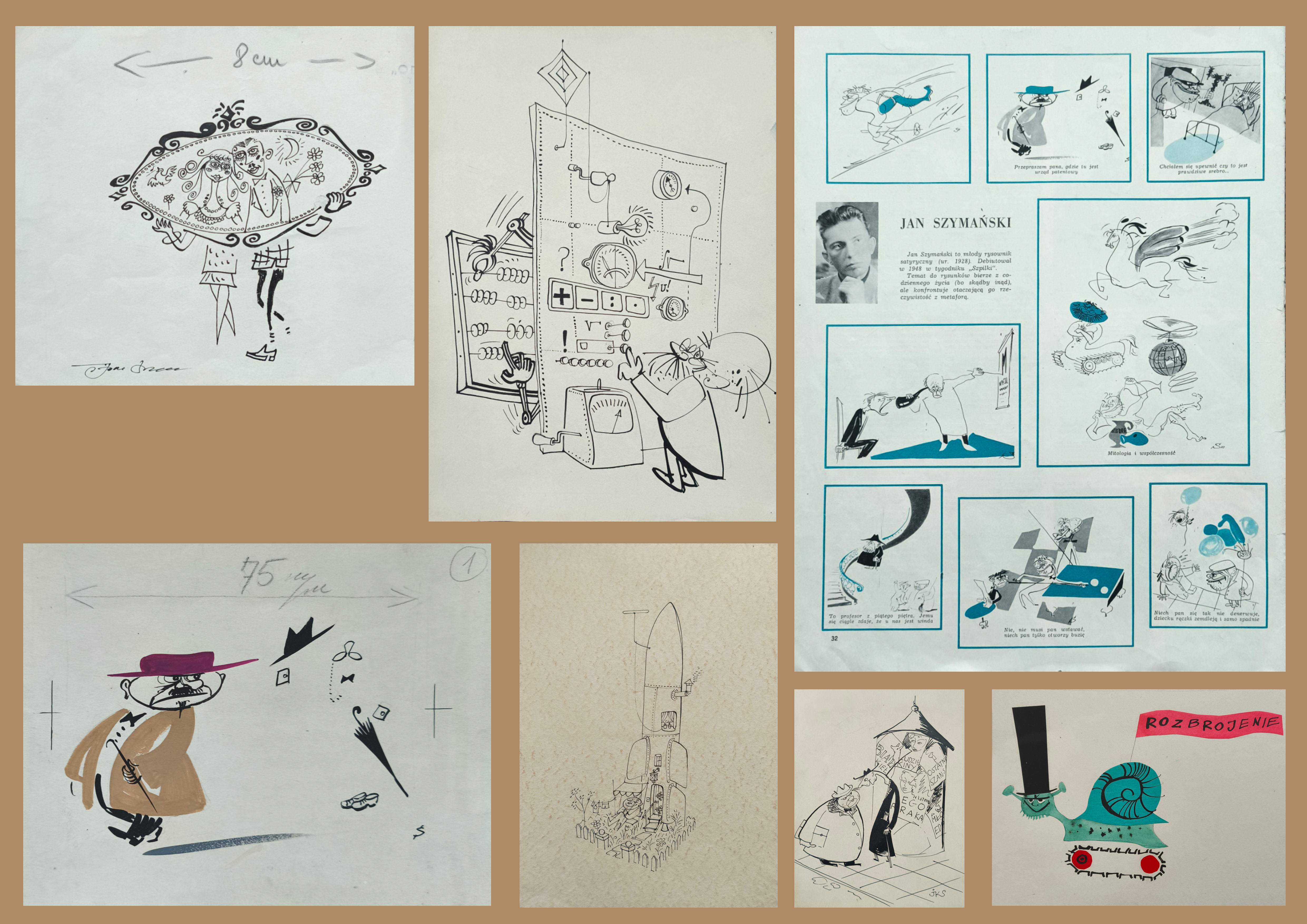 Jej przyszły mąż, Jan Szymański, część wojny przeżył w Warszawie, a następnie wraz z matką przeniósł się do Częstochowy. Ponieważ był już bardzo wysokim młodzieńcem, matka obawiała się, że zostanie wysłany na roboty przymusowe. Po wojnie podjął studia na Wydziale Architektury, ucząc się m.in. u prof. Zygmunta Kamińskiego, który wykonał rysunki portretowe Jana Szymańskiego. W tym czasie Jan Szymański pisał felietony oraz tworzył rysunki, grafiki i dowcipy rysunkowe. Wykonywał zlecenia m.in. dla „Juventuru”, „Trybuny Wolności”, „Tygodnika Studenckiego »Od nowa«”, „Kaktusa” oraz „Sztandaru Młodych”. Pod koniec lat 60. nawiązał współpracę z eksportowym magazynem „Made in Poland” oraz z „Życiem Osiedli WSM”. W połowie lat 70. ukazał się jego artykuł z rysunkami pt. „Eine Postkarte aus Warschau” w magazynie „Kultur im Heim”. Wszystkie te publikacje dotyczyły mebli i aranżacji wnętrz. Liczne teksty ukazywały się także w cyklu „Moje Twoje Nasze Mieszkanie” w „Zwierciadle”. Jan Szymański był również wykładowcą na Katedrze Rysunku Wydziału Architektury Politechniki Warszawskiej. Jest autorem licznych książek tj. "Małe mieszkanko", "Książka o mieszkaniu", natomiast wraz z Kazimierzem Muszyńskim książki pt. "Żyjące ściany".